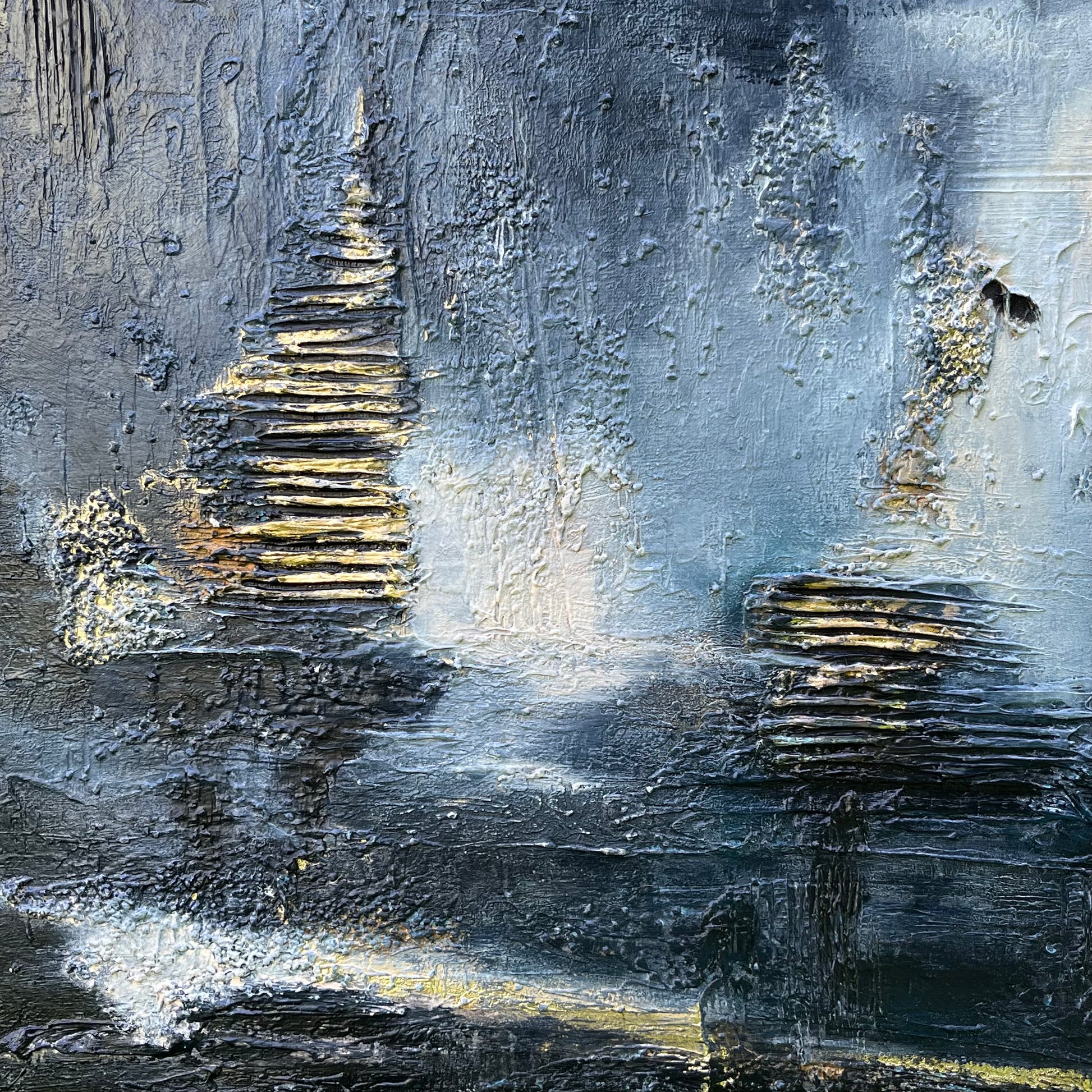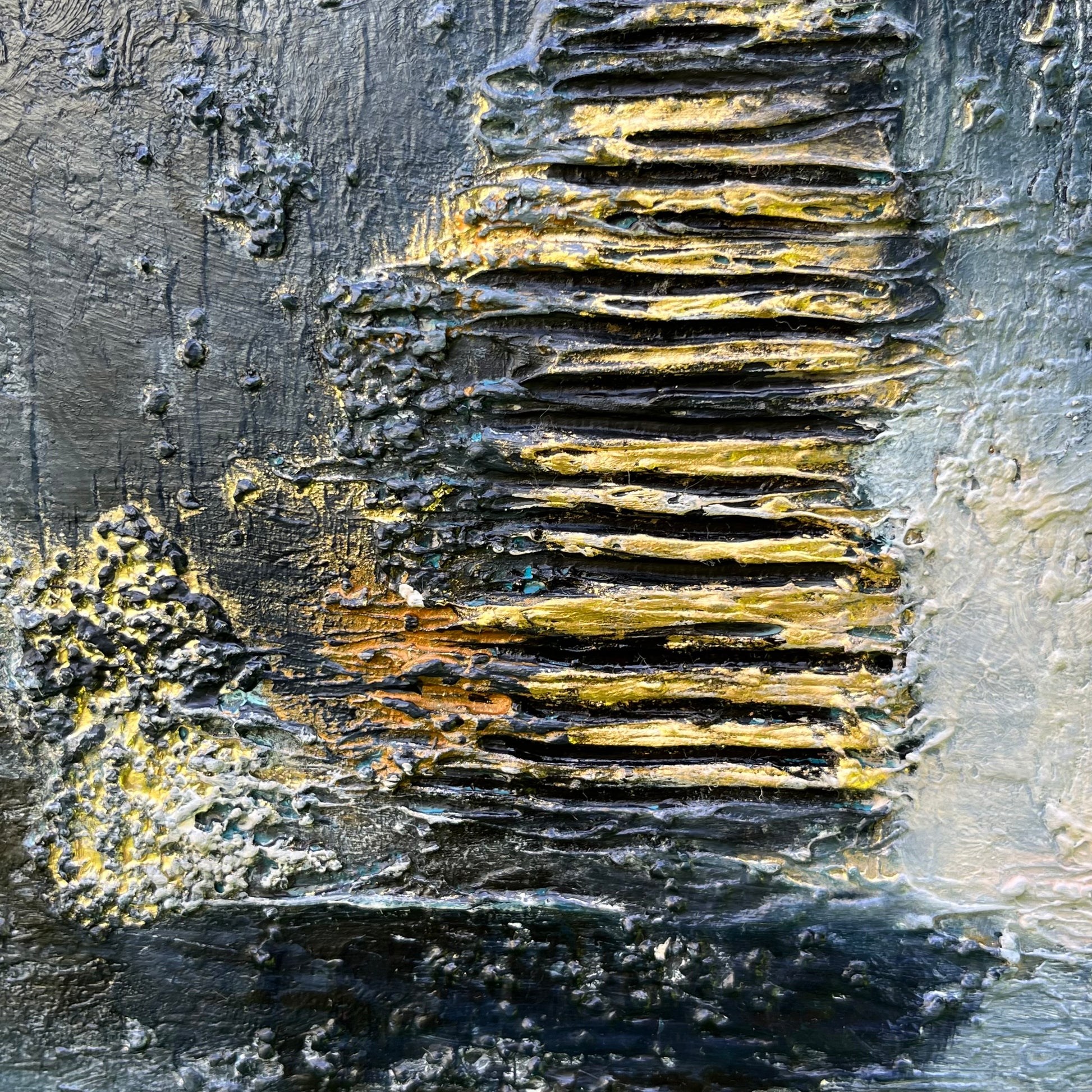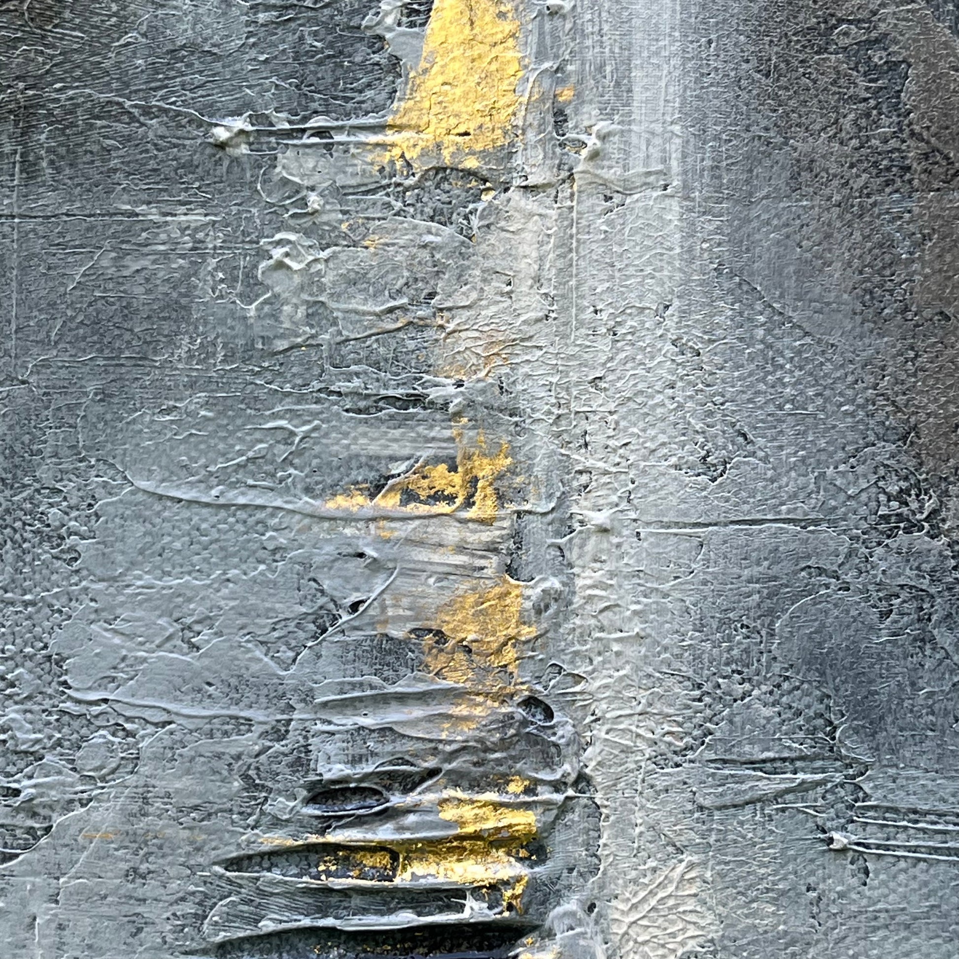 Mixed media, oil and genuine 24 karat gold leaf on canvas.