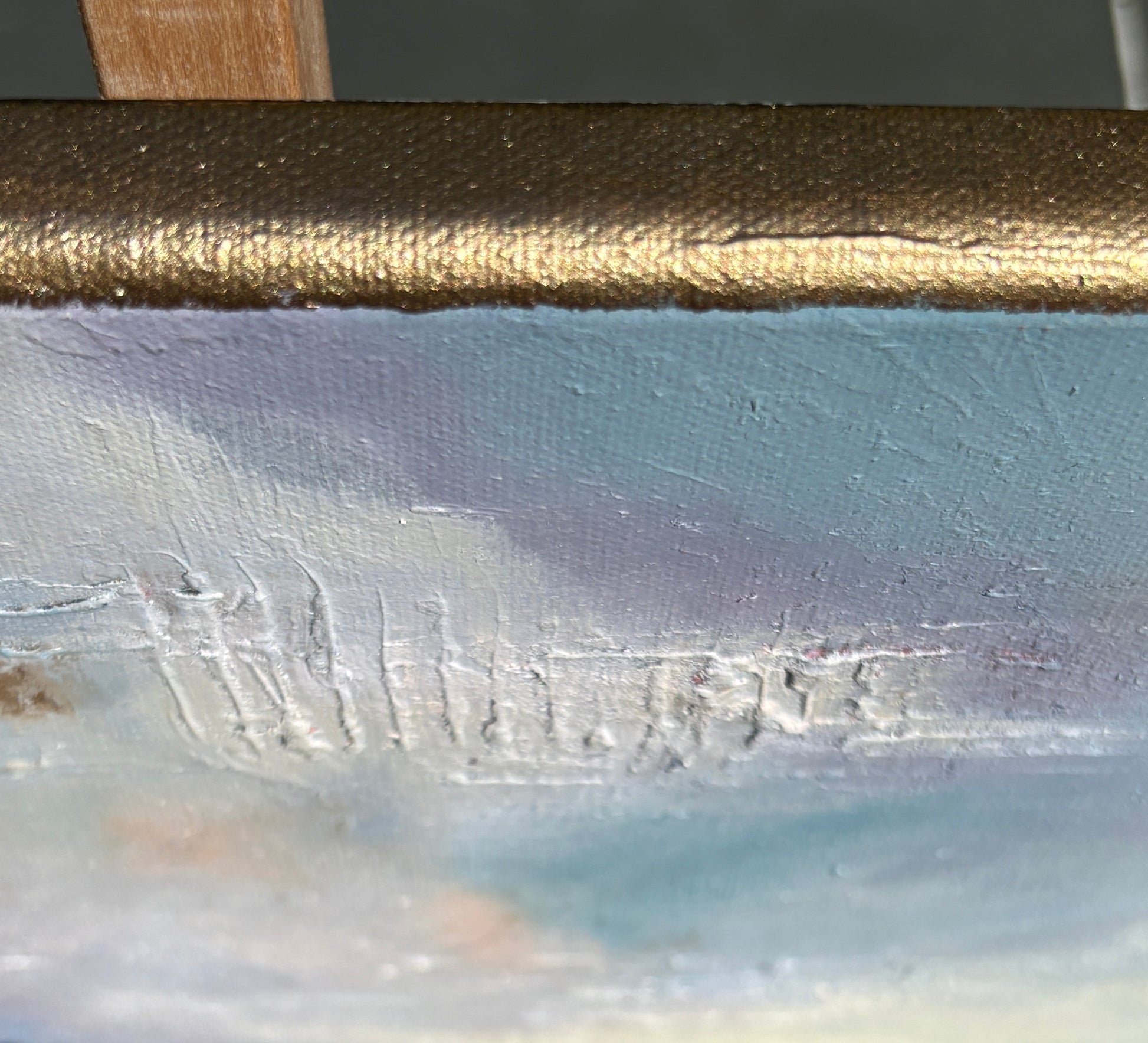 Delicate golden edges complete the work, allowing it to be displayed as is or within a frame, where the shimmer subtly interacts with light.